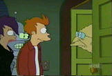 intenta instalarle su chip de empleo. Fry se asusta por su empleo